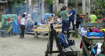 Eine Schulklasse der Max-Brauer-Schule am Lagerfeuer